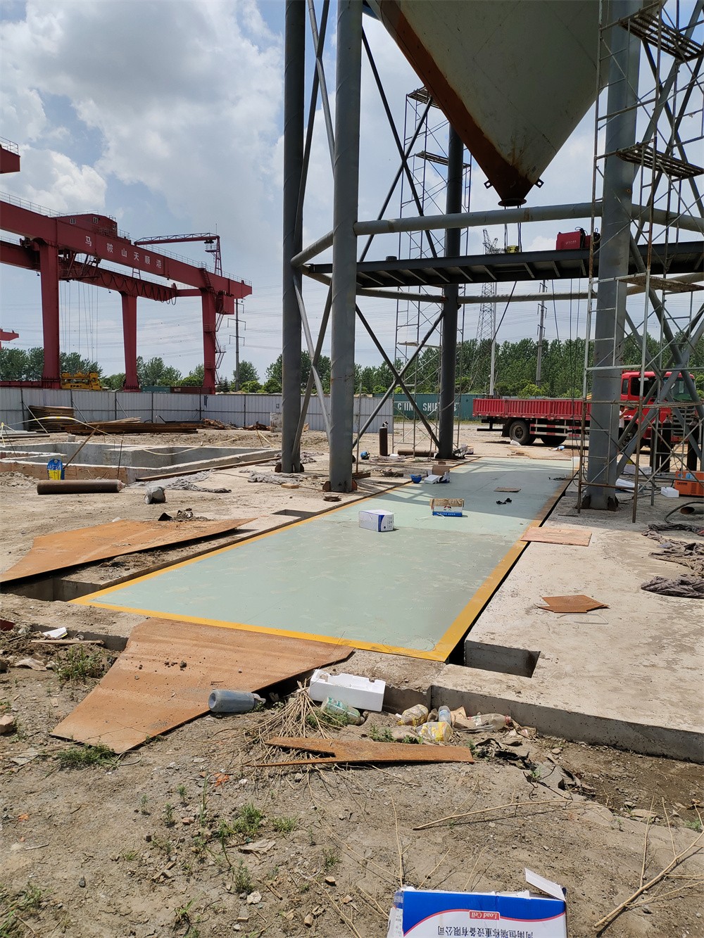 馬鞍山天順港水泥物流貿(mào)易項(xiàng)目100噸地磅施工案例