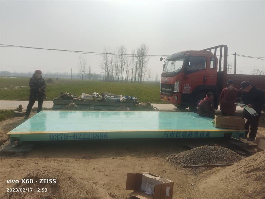 采背景購:商丘市睢縣郭莊農(nóng)業(yè)種植合作社,為了即將迎來的蔬菜成熟旺季,聯(lián)系訂購了河南恒瑞地磅廠2.5*5米定額20噸的地磅,地磅由一節(jié)2.5*5米組成,配備了柯力8t懸臂梁和XK3118K9儀表,現(xiàn)地磅已安裝完畢投入使用。